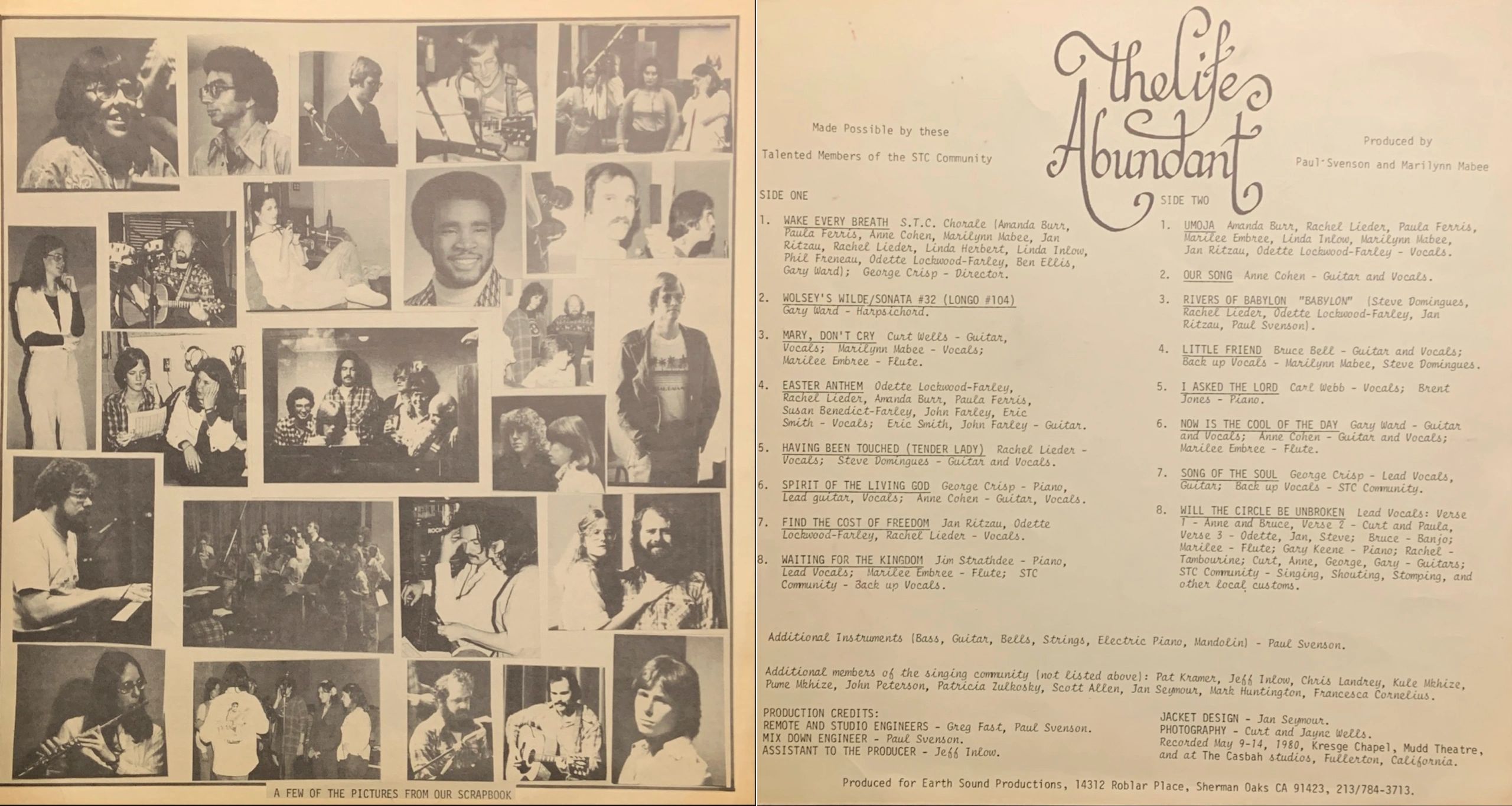 Music from the School of Theology at Claremont community recorded in 1980. The audio was transcribed from a vinyl LP.